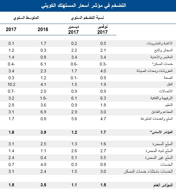 التضخم بالكويت يتراجع في 2017 لأدنى مستوياته منذ 13 عاما معلومات مباشر