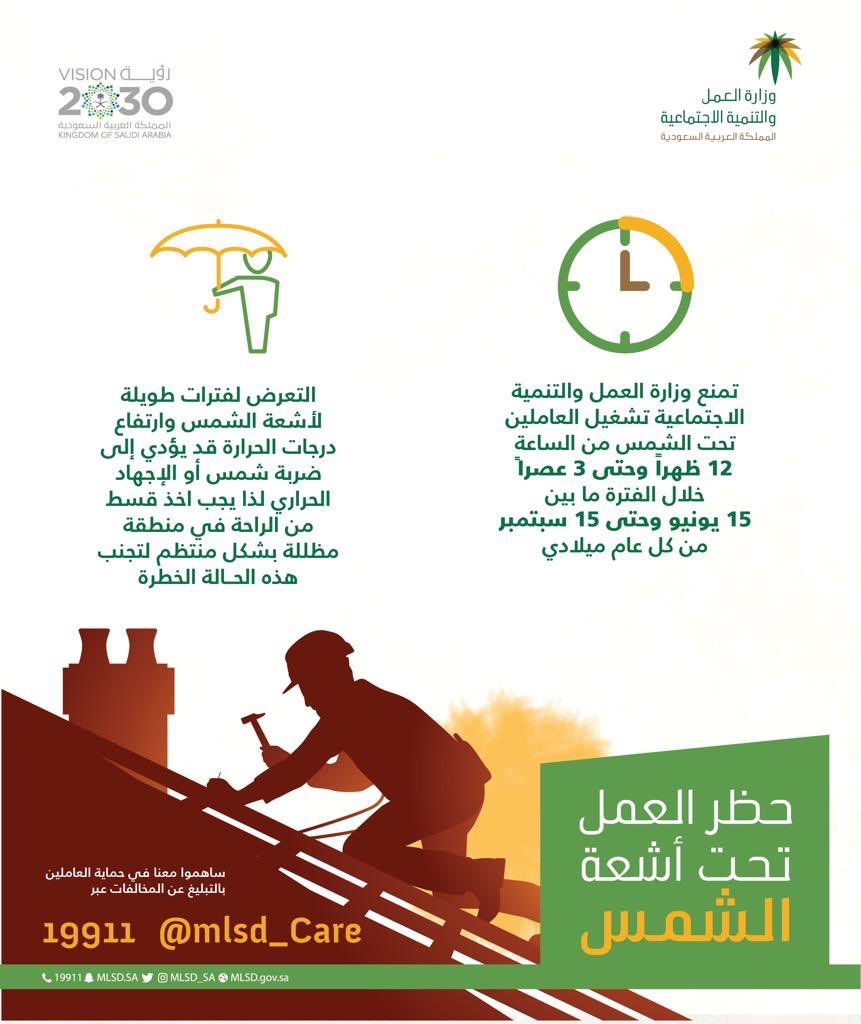 الموارد البشرية تطبيق قرار منع العمل تحت أشعة الشمس بدء ا من اليوم مجلة سيدتي