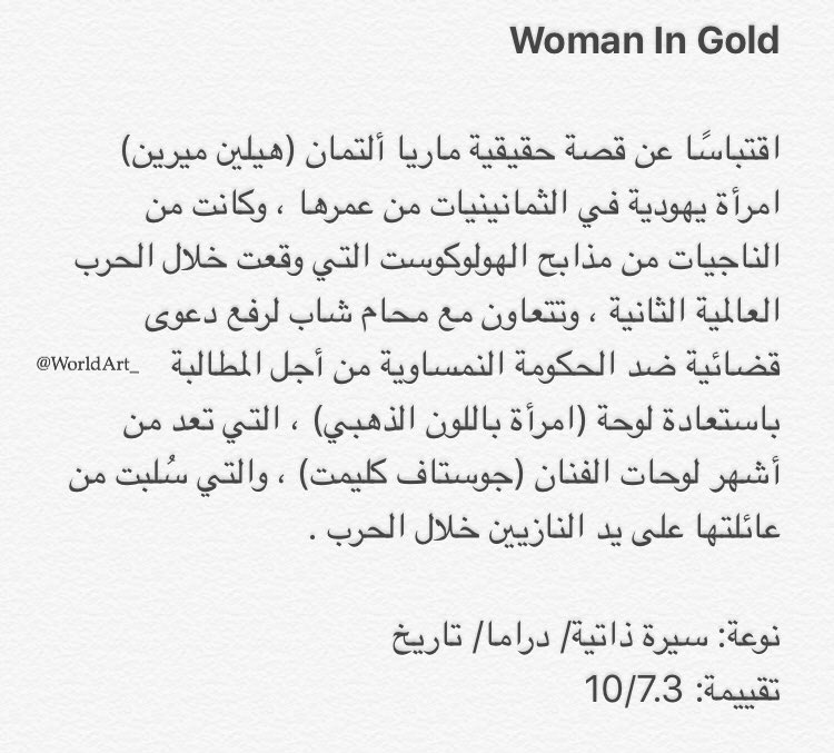 عالـم الفـن On Twitter Woman In Gold يتحدث عن نهب النازيين للقطع الفنية من منازل اليهود في النمسا بعد تهجيرهم وحرقهم واخذهم هذه الممتلكات وبيعها Https T Co 8fntrldwxl