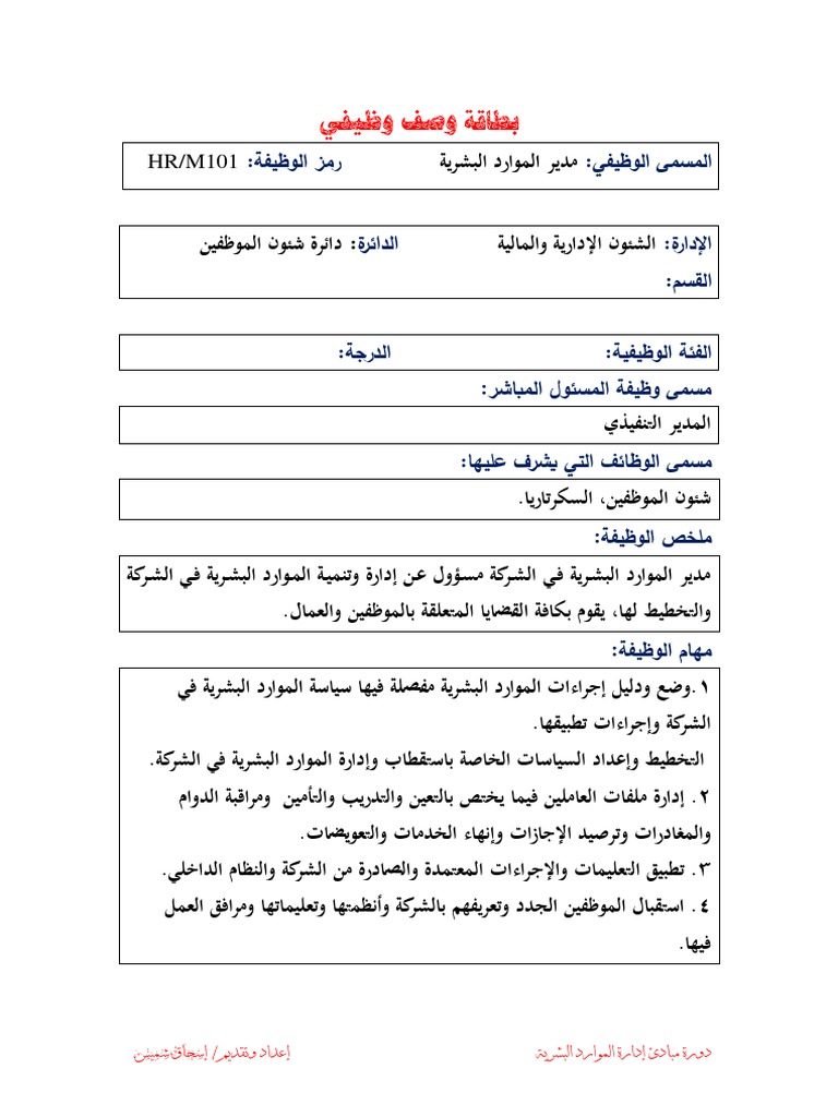 نموذج وصف وظيفي لمدير الموارد البشرية