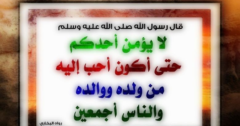 حديث لا يؤمن أحدكم حتى أكون أحب إليه من ولده ووالده والناس أجمعين