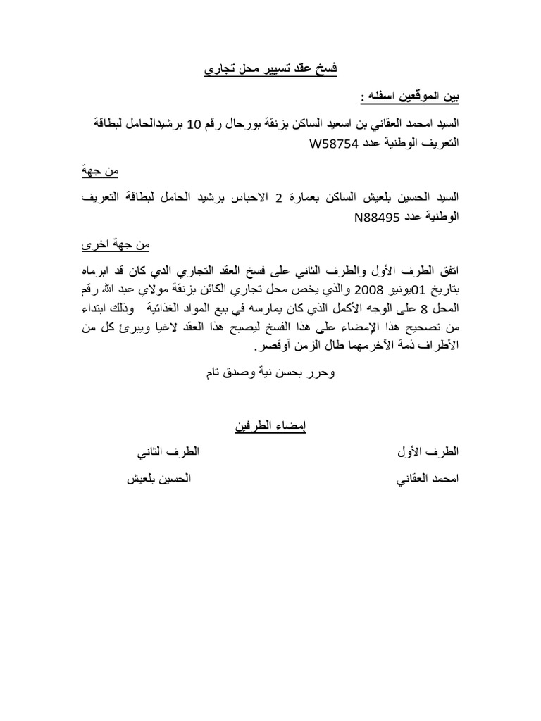 تحميل نموذج فسخ عقد كراء محل تجاري أو شقة بصيغة Word صالح للطباعة والتعديل
